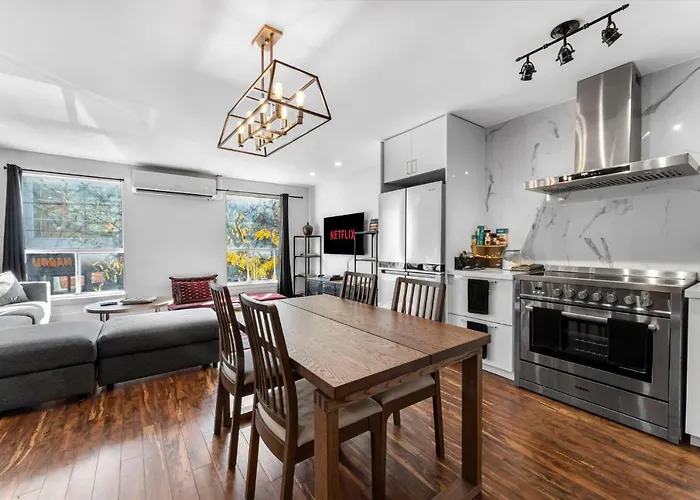 Diese Unterkunft bietet eine Reihe von Annehmlichkeiten für Ihren Komfort, einschließlich von einer Kaffee-/Teemaschine, einem Kühlschrank und einem Herd. Das Restaurant Java House verwöhnt Gäste mit kanadischen Speisen und befindet sich etwa 200 Meter von den Apartments entfernt. Zum Flughafen Toronto-City sind es nur 7 Minuten.